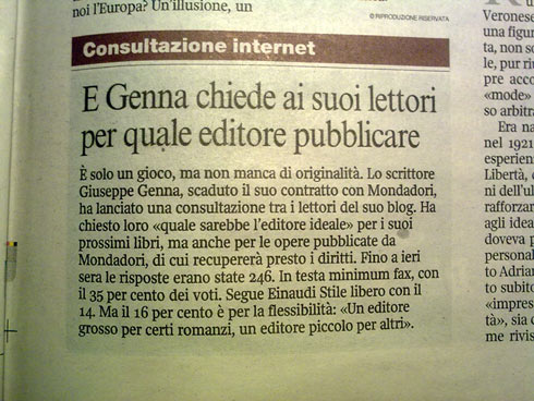 Insieme ad Affaritaliani, il gioco del sondaggio editoriale sui libri del Miserabile Scrittore è finito anche sul Corriere della Sera. Sotto l’immagine del breve ma sigificativo articolo, il Miserabile Sondaggio, a cui siete tutt* invitat* a partecipare: smetto di proporlo quando si arriva ai 1.000 voti.