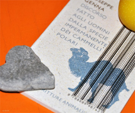“esseri immensi, arcontici, dagli zoccoli di metallo istoriato e le labbra umide di arnica e di più varie mirre, lo sguardo fisso nell’astro indomito del sole”: sono – eleganti come Alcibiade, puri come Proserpina strappata ai suoi fiori, di fuoco come una dea sumerica -, ecco, i “Cammellli Solari”.