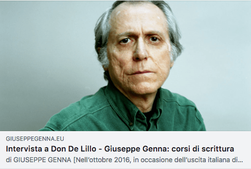 Tra i materiali utili per il corso di scrittura che terrò da ottobre alla libreria Egea a Milano, propongo una mia intervista a Don DeLillo, con cui ho avuto l’onore di parlare del suo strepitoso “Zero K” (Einaudi). Era l’ottobre 2016 e si trattò di una conversazione a tutto campo sulla letteratura, le poetiche, le narrazioni – e qualcosa di più. Nel sito dedicato al corso, informazioni e moduli per l’iscrizione.