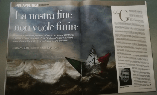Sul nuovo numero de “L’Espresso”, c’è un mio racconto distopico sull’Italia salvinizzata: giustizia ingiusta, pena di morte, azzeramento delle migrazioni, psichiatria autoritaria, divieto di aborto, discriminazione di genere, distruzione della cultura come valore – un incubo possibile. Il titolo mi pare bellissimo ed è una scelta dello staff del magazine.