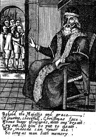 Babbo Natale in un’incisione del 1686 di Josiah King’s, dal titolo The Examination and Tryal of Father Christmas