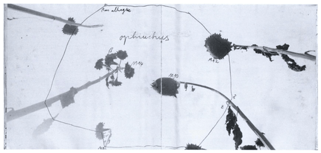 A conferma dell’orientamento metafisico di questi lavori, alcuni libri (e le relative pitture) rendono omaggio a Robert Fludd, il medico e filosofo del Seicento che rappresentò graficamente l’intersezione mistica tra microcosmo e macrocosmo e sostenne l’idea che ogni pianta abbia la propria stella corrispondente (fig. 5).⁵