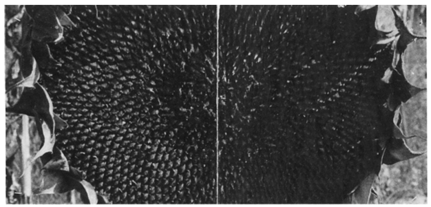 Nella doppia pagina successiva, vediamo questo girasole/stella in primo piano (fig. 3). Voltando ancora pagina, ci avviciniamo ulteriormente: siamo quasi completamente assorbiti nel disco scuro del fiore, che brilla nella luce radente.³