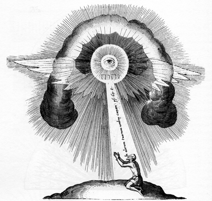 [l’immagine sopra: “In alarum tuarum umbra canam” di Robert Fludd, 1621]